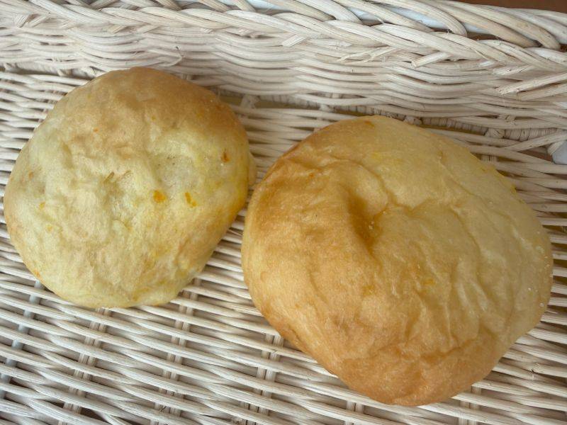 増田さんは「みかんの皮は細かく刻んでミカンピールにし、パン生地に練り込み(写真①)、食パンの耳は細かくしてマーガリンや牛乳などと混ぜ、タルト生地に活用しました。通常の生地よりも柔らかくて噛みやすく、見栄えも良いので、ご利用者様から特に人気のメニューになりました(写真②)。さらに、野菜の廃棄部分を活用して、お好み焼きやご飯のお供などの新メニューを開発しました。調べてみると、その部分には高齢者に不足しがちな栄養が多く含まれていることが分かり、活用の重要性を強く感じました」と話してくださいました。