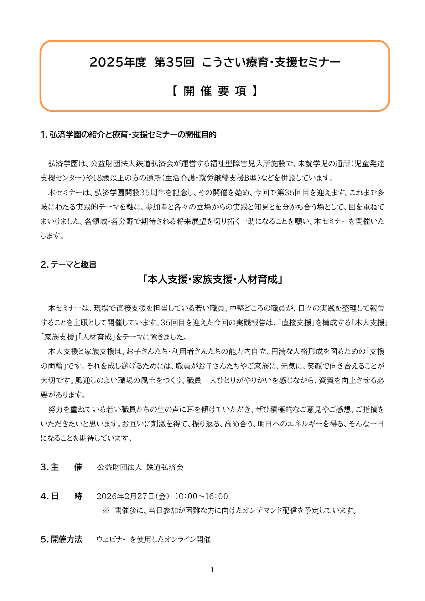 公益財団法人鉄道弘済会 社会福祉部 こうさい療育・支援セミナー担当