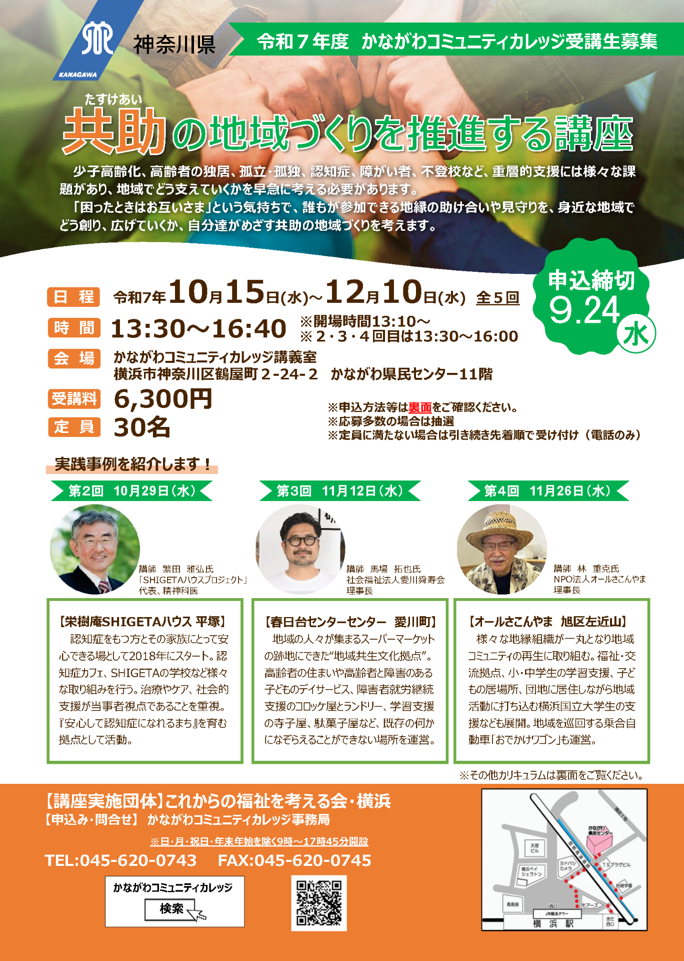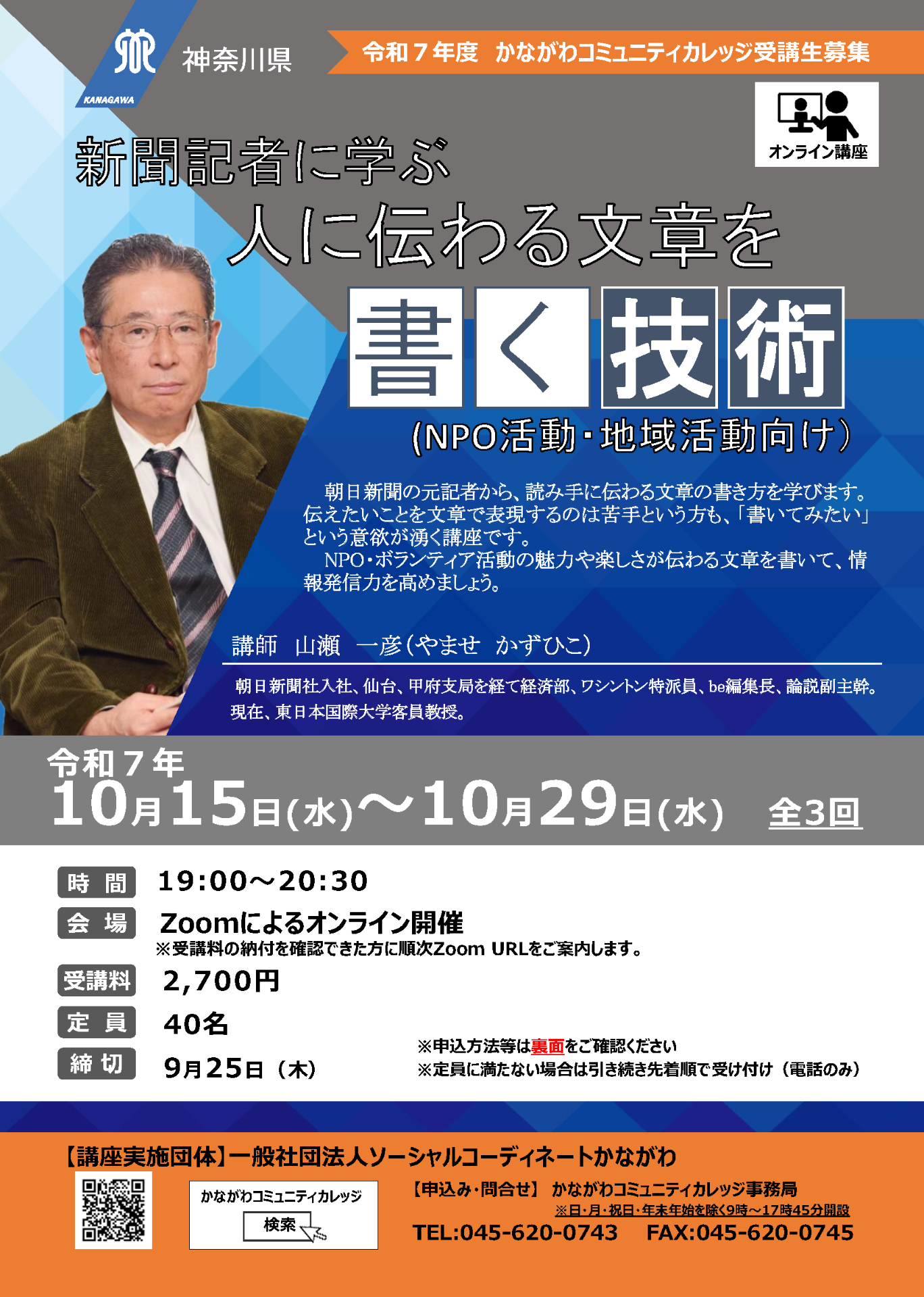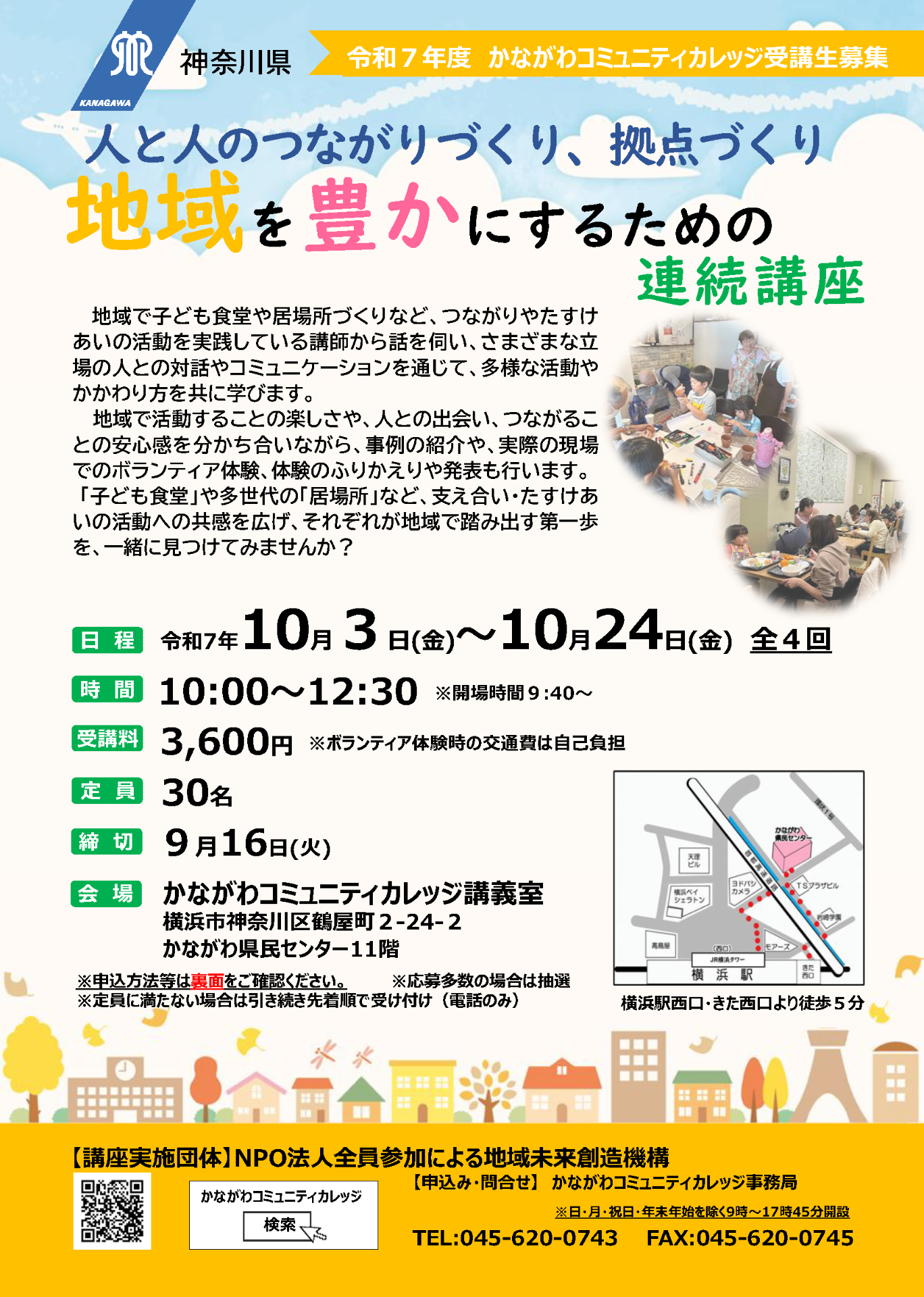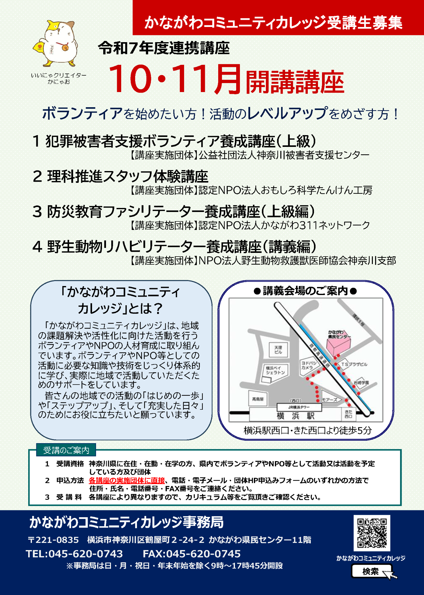 「かながわコミュニティカレッジ 10月開講講座」のお知らせ
