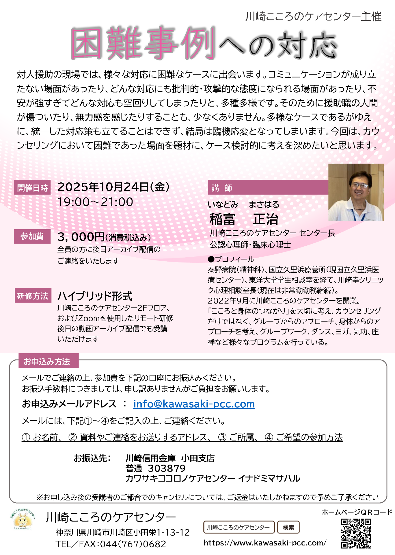 困難事例への対応 - 開催日時:令和7年10月24日(金) 19時00分~21時00分
