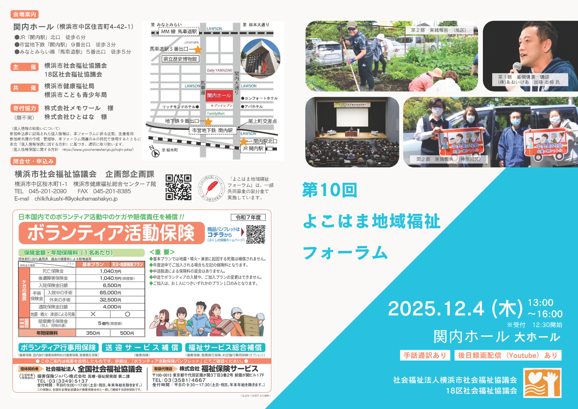 「よこはま地域福祉フォーラム」は、近隣同士の声かけやまちぐるみの支えあいの活動、また専門機関との関わりなど、暮らしの中の様々なつながりを実感し共有することで、身近な地域の取組がさらに広がっていくことを目指して開催します。 - 開催内容