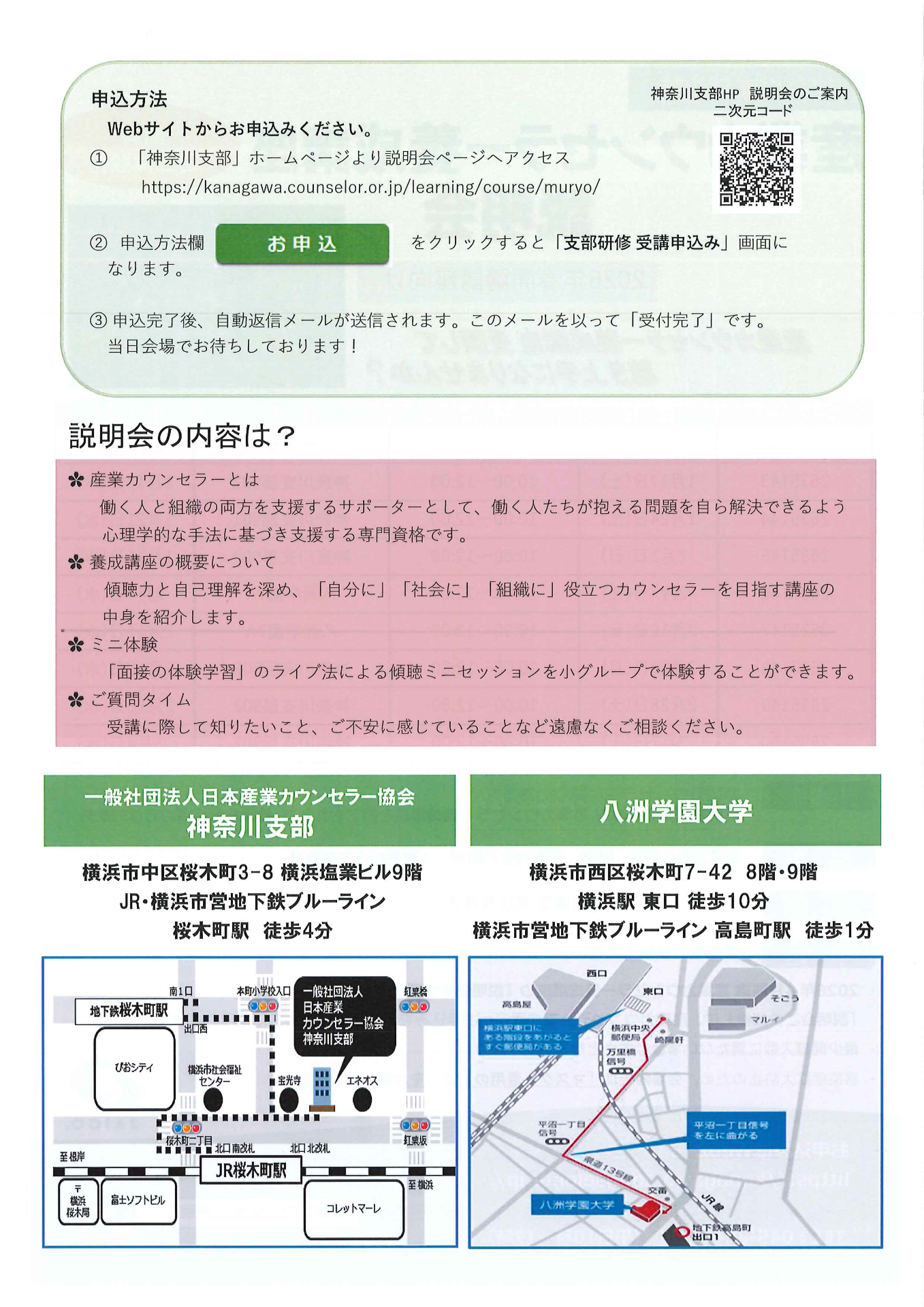 - 申し込み方法:一般社団法人日本産業カウンセラー協会神奈川支部のHPから申込
